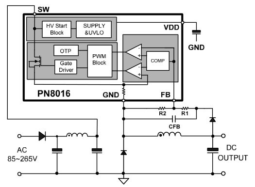 PN8016SSC-R1B芯朋微5V300MA 非隔离led驱动电源恒流芯片