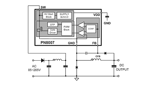 PN8007固定5V输出非隔离交直流转换芯片 可替代LP2178A