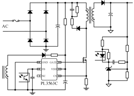 PL3563C 是一款低成本、高性能的电流模PWM控制芯片,其优异的性能可满足小功率开关电源的低功耗要求。芯片的启动电流典型值仅5uA,可减小启动电路损耗;而较低的工作电流也可以提高系统的效率;芯片内置的“无噪音绿色模式”同样能够提高系统的效率,同时这种绿色模式能使开关电源满足严格的能源损耗要求。