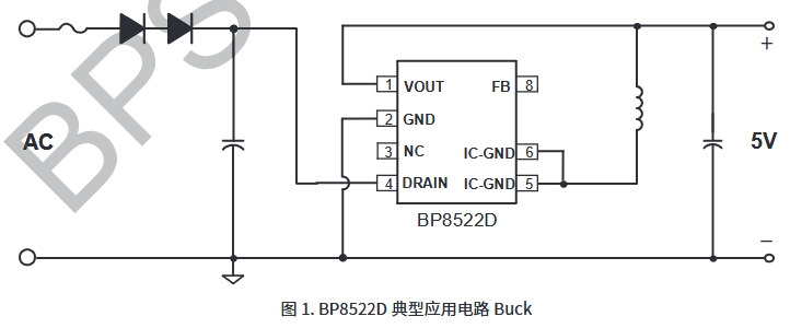 BP8522D是一款高性能、高集成度、低待机功耗的开关电源驱动芯片,适用于全电压85-265VAC输入的Buck、 Buck-Boost变换器拓扑应用。