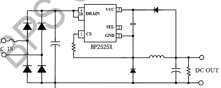 BP2525D晶丰明源SOT33-5封装3.3V/5V超低功耗非隔离降压型AC/DC恒压芯片