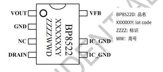 BP8522D的应用领域广泛,包括小家电辅助电源、电机驱动辅助电源、IOT/智能家居/智能照明等。其典型应用原理图和封装信息如下图所示: