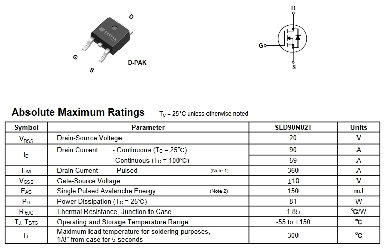 SLD90N02T是由美浦森品牌生产的高性能N沟道MOS场效应管,具备以下特性: