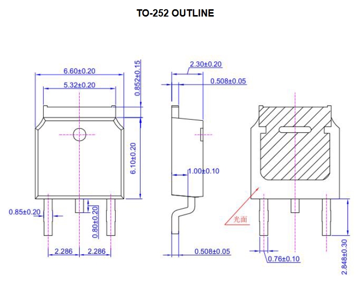封装类型:采用TO-252封装,这是一种常见的表面贴装封装,适用于高功率应用。