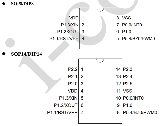 存储器:包括1K的OTP ROM和48字节的RAM,用于存储程序和数据。