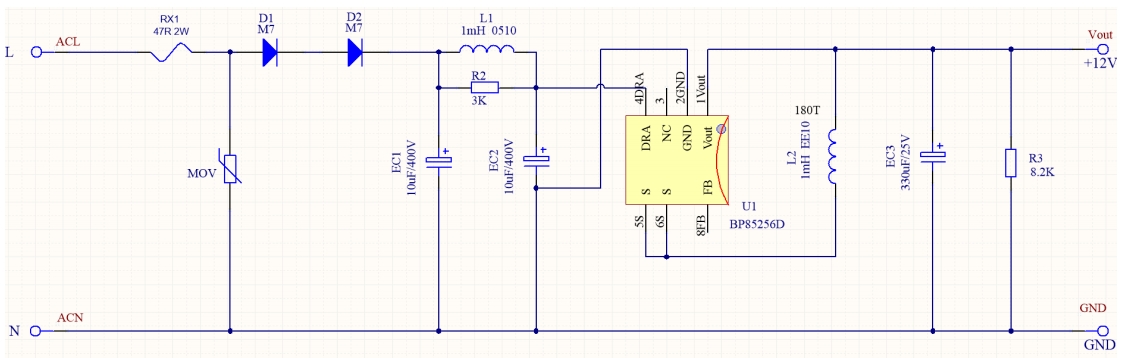 BP85256D提供了一种高效、可靠的非隔离电源解决方案,特别适合12V/300mA的应用。通过精心设计的电路,可以确保电源的稳定性和效率,满足各种电子设备的需求。无论是小家电还是智能家居设备,BP85256D都能提供所需的电源支持。