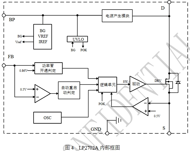 为了确保电源的稳定性和安全性,LP2702A集成了多种保护功能,包括过压保护(OVP)、欠压保护(UVP)、过流?;?OCP)和短路?;?SCP)。