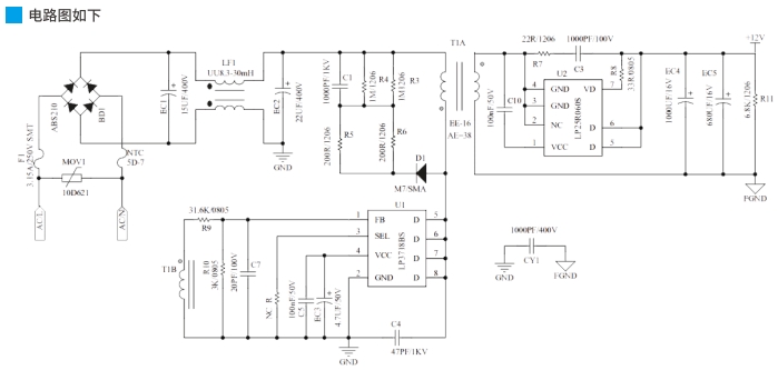 辅助电路包括输入滤波、输出滤波、反馈控制和保护电路。输入滤波电路用于减少输入电压的波动,输出滤波电路则用于平滑输出电压,提高电源的稳定性。反馈控制电路确保输出电压的精确调节,而保护电路则包括过流、过压和短路保护,保障电源的安全性。