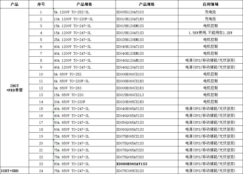 80H065AY1S3芯达茂IBGT +FRD单管 80A 650V TO-247-3L ,应用:电源(UPS/移动储能/光伏逆变)