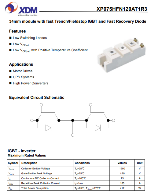 XP075HFN120AT1R3 芯达茂 国产IGBT 功率模块 75A 1200V