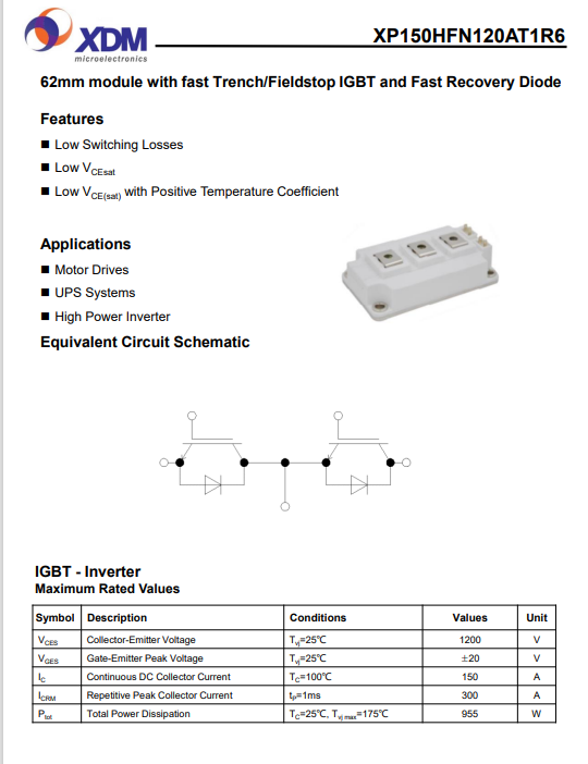 XP150HFN120AT1R6 芯达茂 国产IGBT功率模块150A 1200V 62mm
