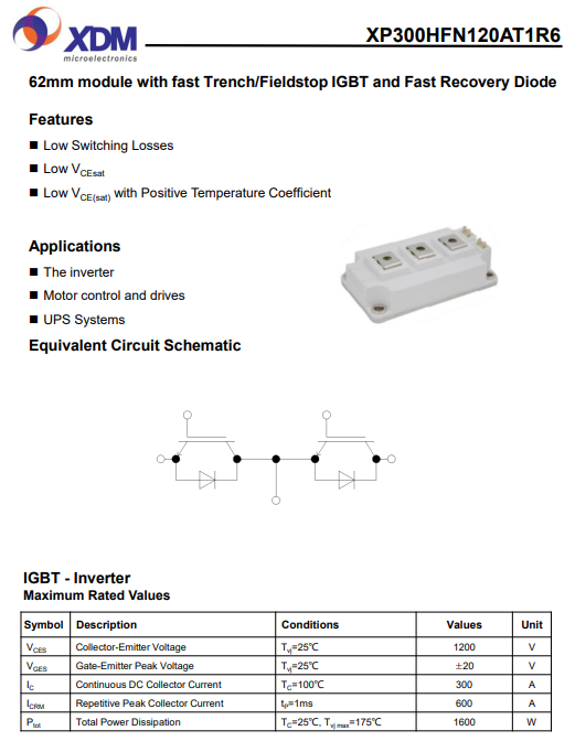 XP300HFN120AT1R6 芯达茂 国产IGBT 功率???300A 1200V 62mm