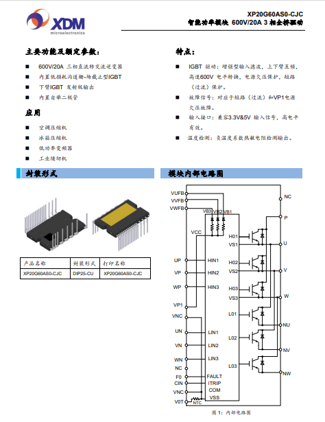 XP20G60AS0-CJCG 智能功率???600V/20A 3 相全桥驱动