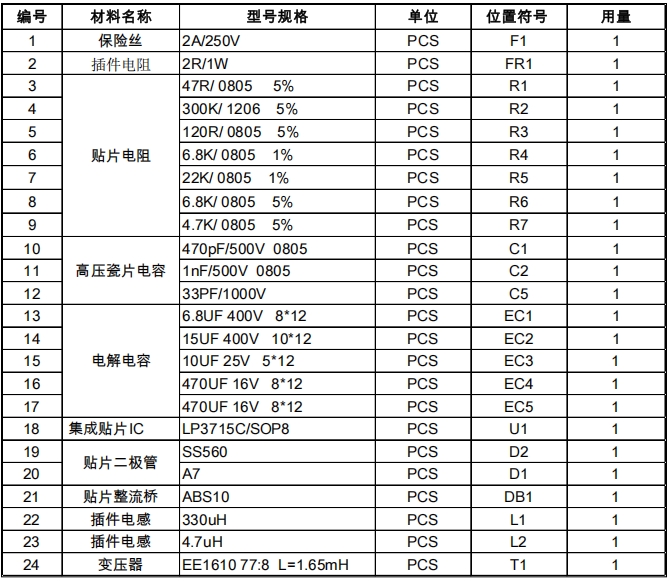 LP3715C:作为PWM控制器,负责调节输出电压和电流。